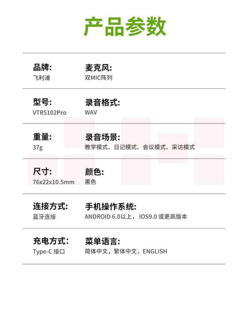 飞利浦(PHILIPS)VTR5102Pro 16G 专业高清降噪外放 会议录音转文字 录音器 同声传译 微型便携录音笔