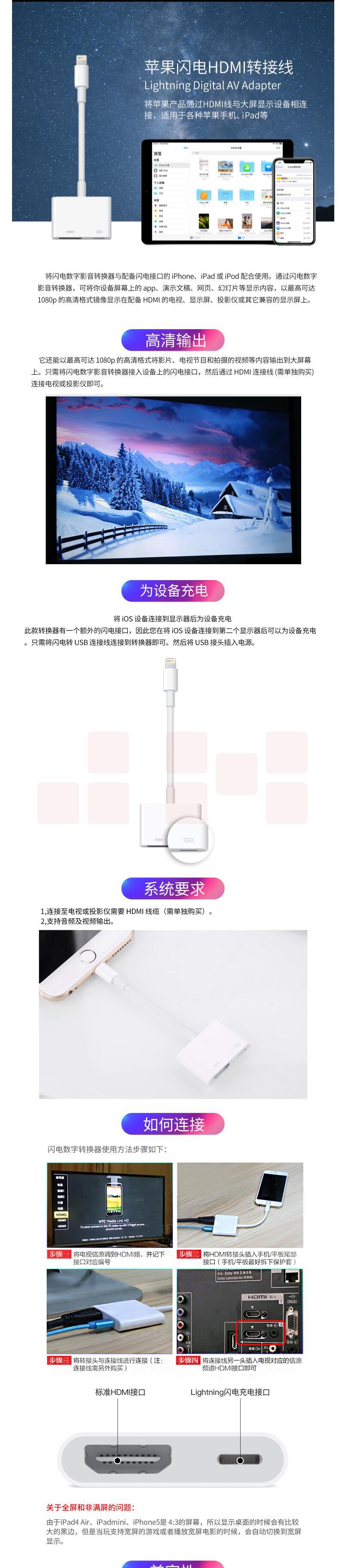 Apple Lightning/闪电数字影音转换器/HDMI iPhone转接头 iPhone投屏 货号:LJ