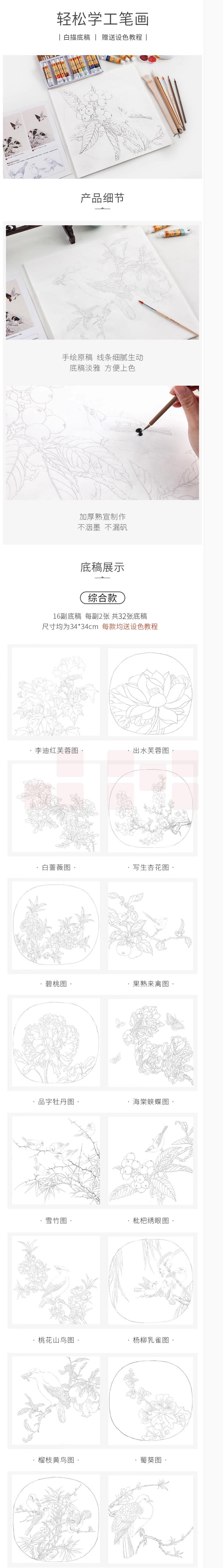 工笔画底稿白描花鸟 综合款底稿32张 货号:JC