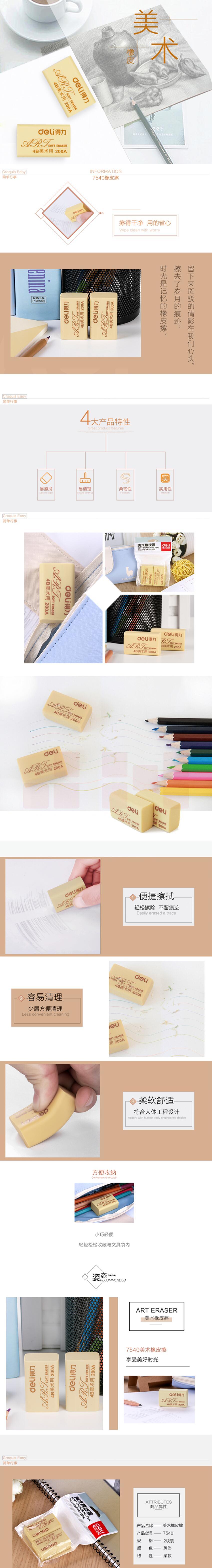 得力7540 4B橡皮美术橡皮擦42*26*16,mm 2块/包;单位;包