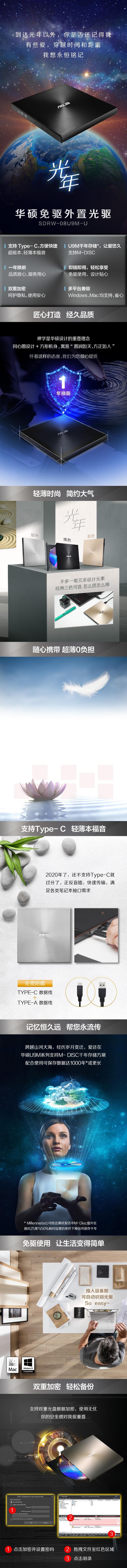 华硕(ASUS) 8倍速 外置DVD刻录机 移动光驱 支持USB/Type-C接口 (兼容苹果系统/SDRW-08U9M-U)-银色