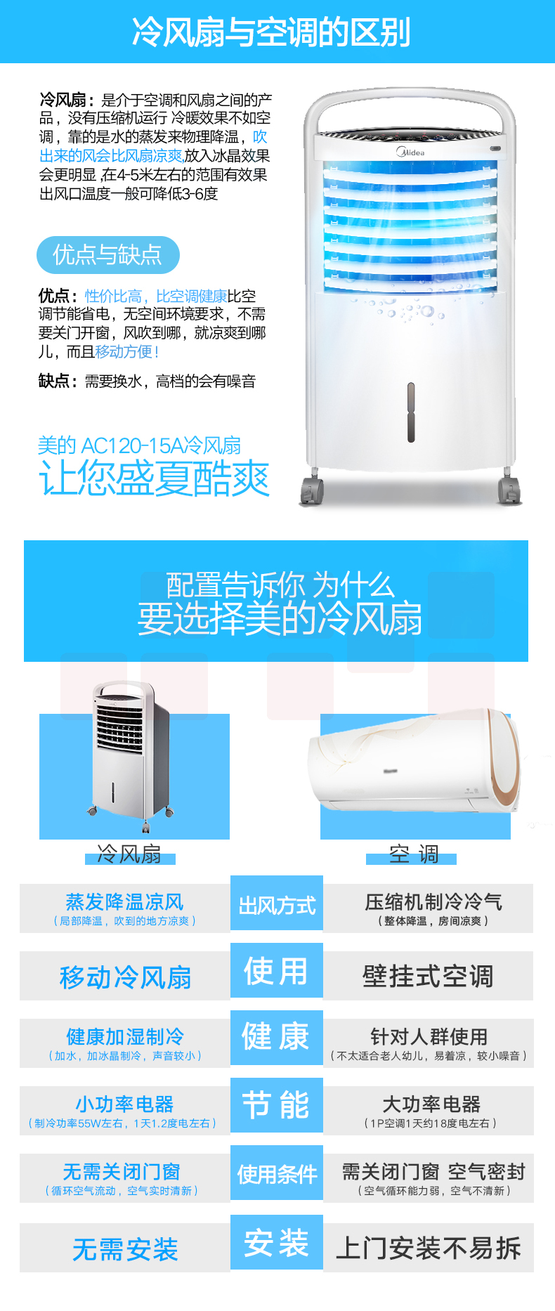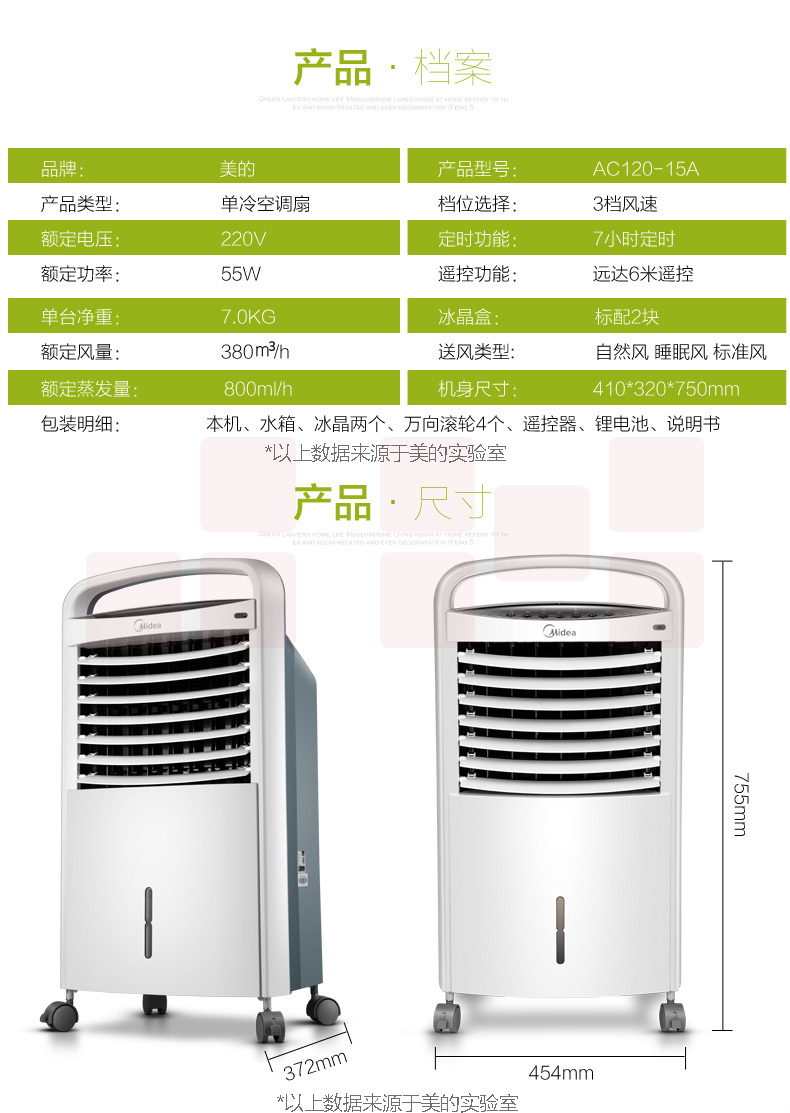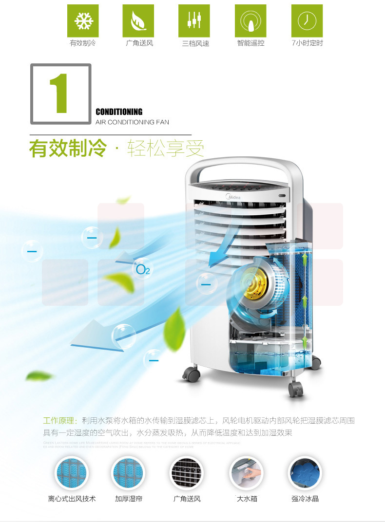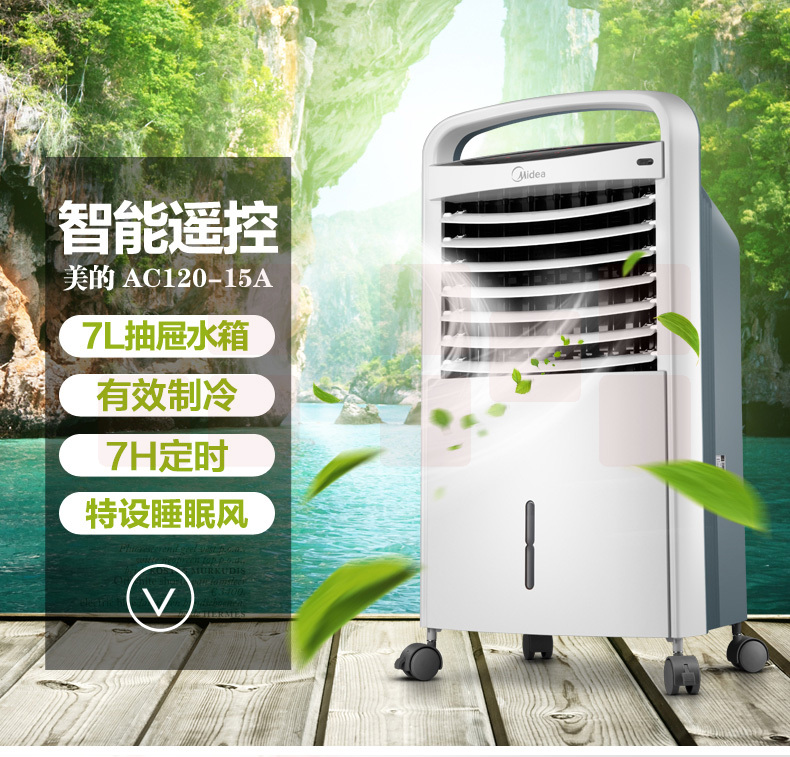 美的(Midea)AC120-15A 空调扇家用冷风机制冷风扇遥控单冷加湿水冷