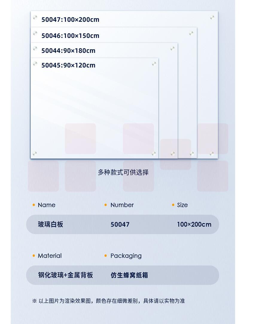 得力(deli)200*100cm超白玻璃白板磁性钢化悬挂式玻璃白板办公会议写字板黑板50047