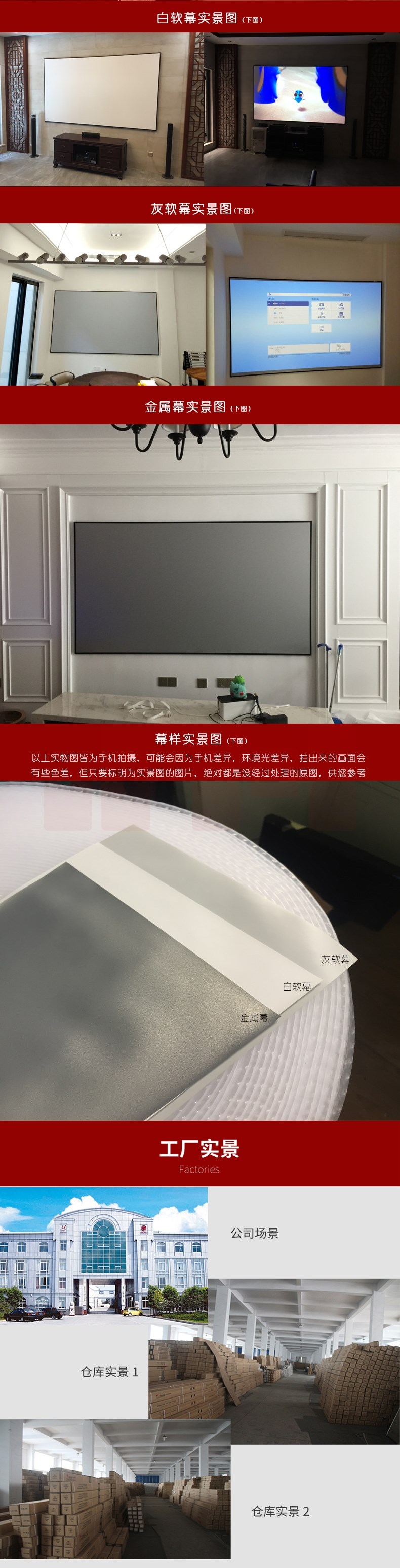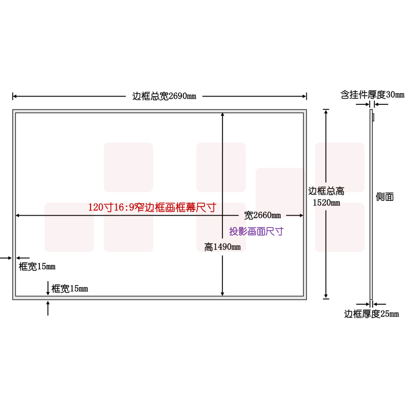 窄边框120寸16:9纳米高清4K&3D白软幕灰幕金属幕影院画框幕 2.66*1.49