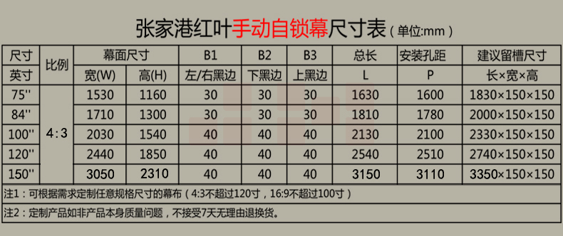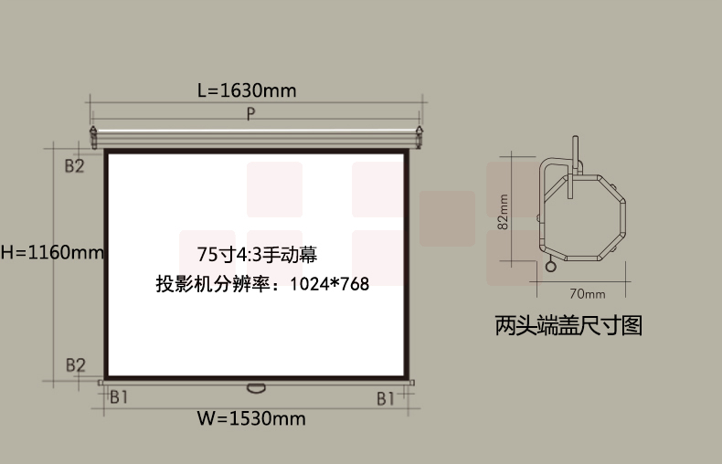 质保一年 好品质 影院视效 高清大屏 办公商用 家庭影院 手动自锁投影幕75寸4:3玻珠 白塑幕布 1.53*1.16