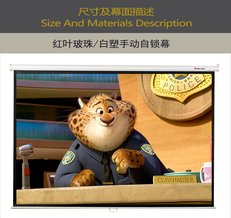 红叶(HONGYE)手动自锁投影幕75寸4:3玻珠 白塑幕布 1.53*1.16