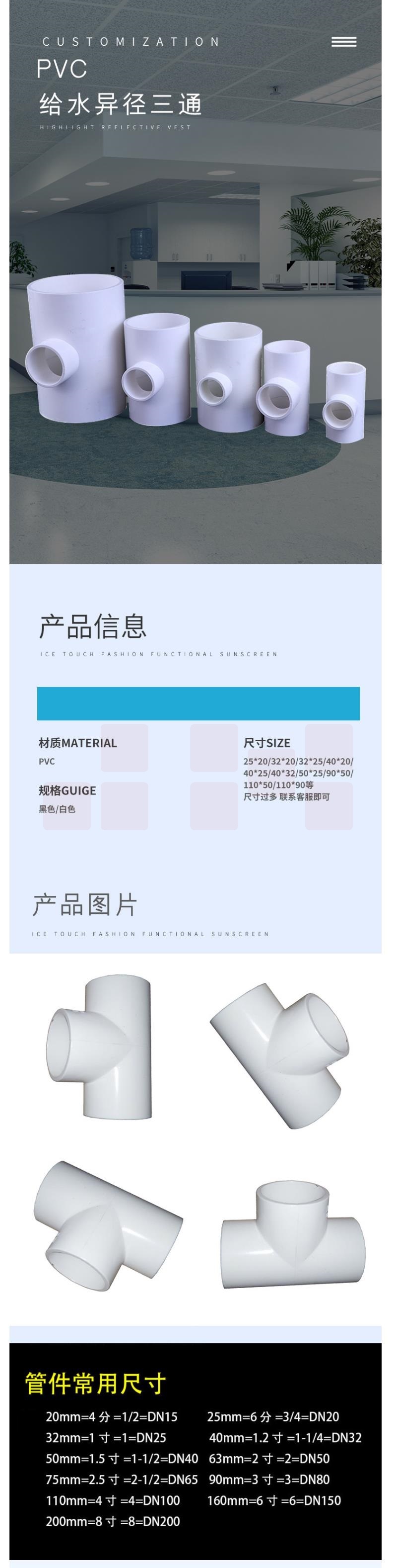 PVC异径三通 排水管件 变径三通 63转40 货号:JC