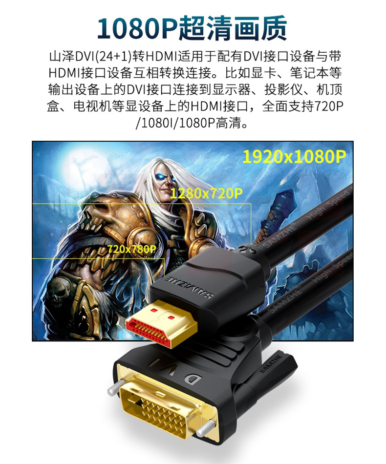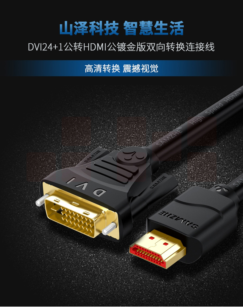 山泽(SAMZHE)HDMI转DVI连接线 DVI转HDMI转接头高清双向互转笔记本电脑投影仪显示器转换线 1.5米 DH-8015