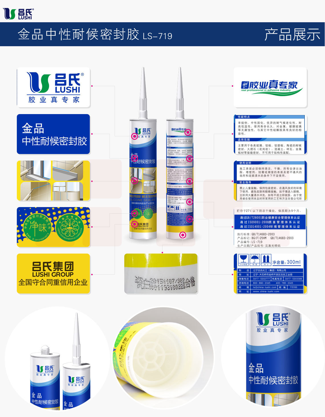 吕氏(LUSHI)中性玻璃胶 免钉胶 金品耐厚硅酮密封胶室外耐老化防水防晒耐用