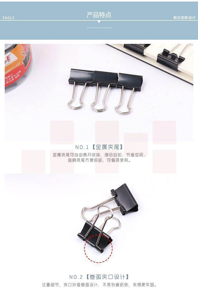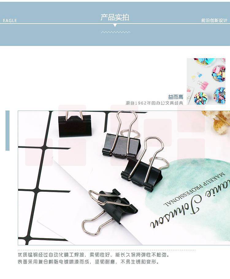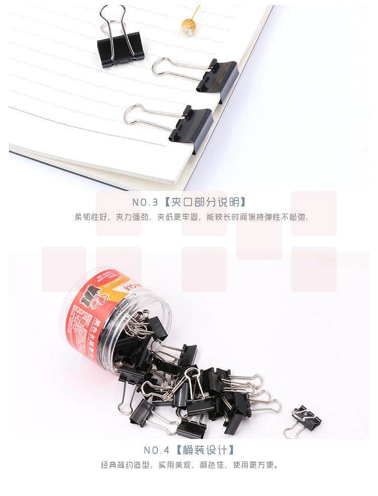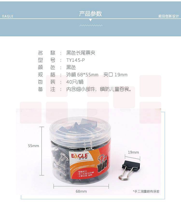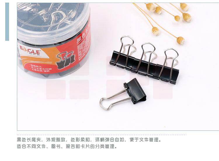 产品名称:益而高TY145-P长尾夹黑色19mm/40支/筒(筒)