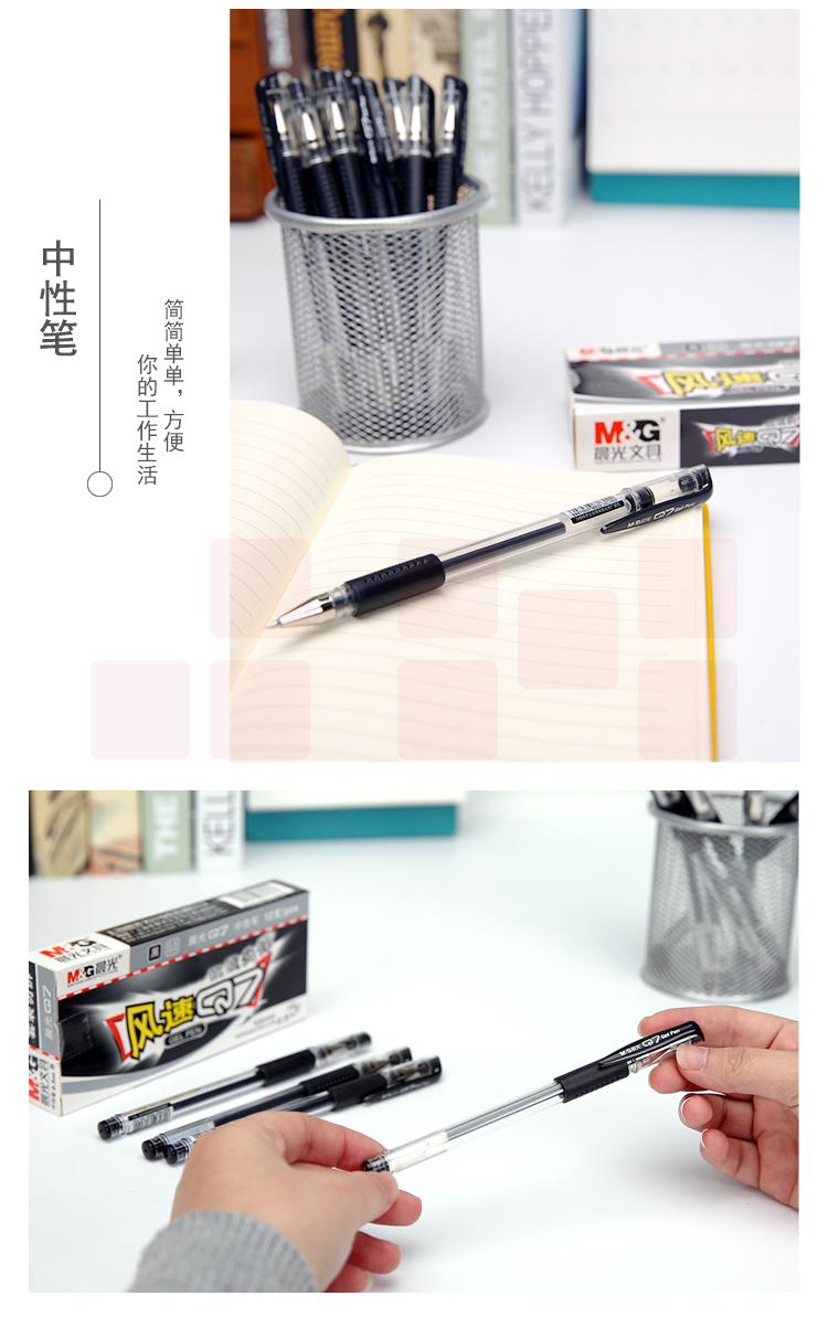 晨光(M&G)中性笔风速Q7B 0.5mm子弹头水笔签字笔 学生办公会议中性笔 蓝色/一盒12支