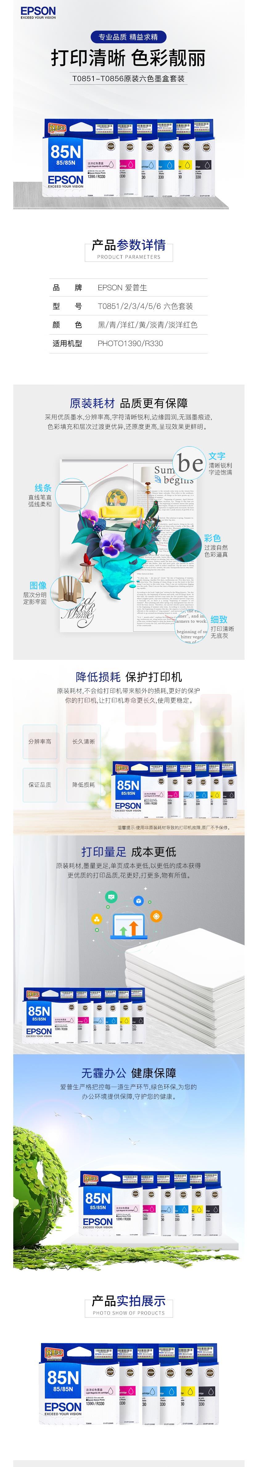 爱普生(EPSON)T0851-T0856原装6色墨盒套装 (适用PHOTO1390/R330机型)