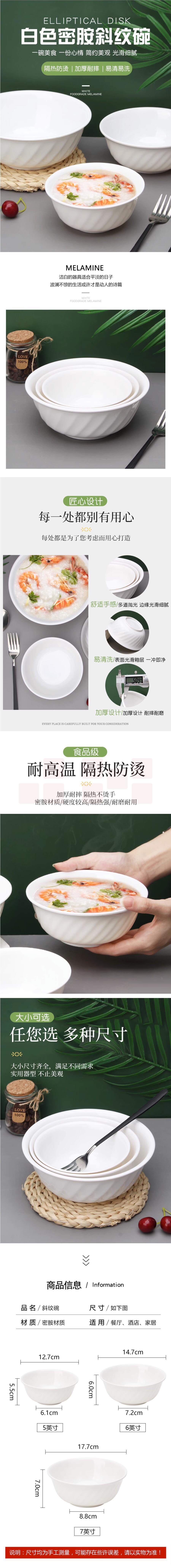 白色密胺碗7寸汤碗仿瓷斜纹碗直径约17.7cm
