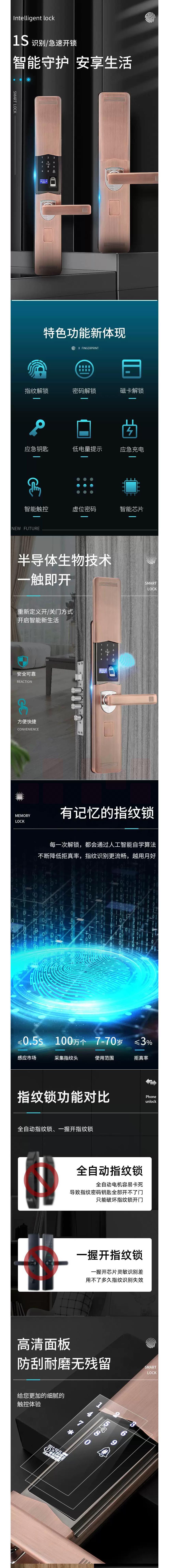 指纹锁 家用防盗防水全自动密码锁 单面防水 智能门锁 货号:JC
