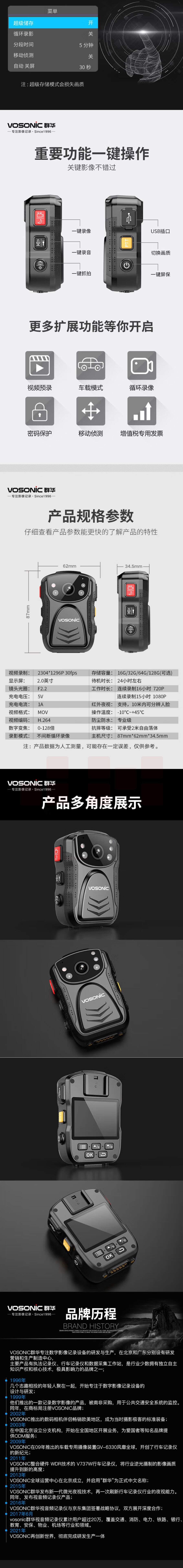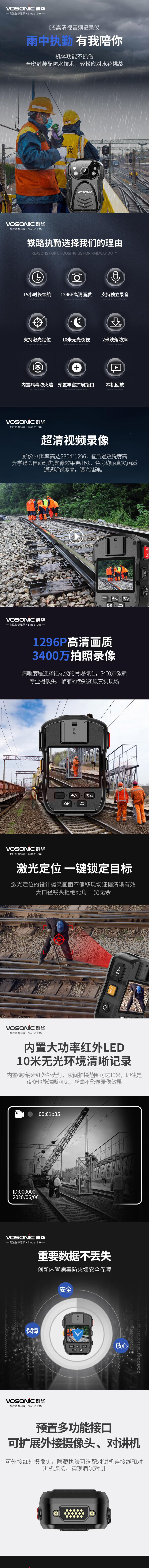 群华 D5 64G执法记录仪1296P 高清红外夜视