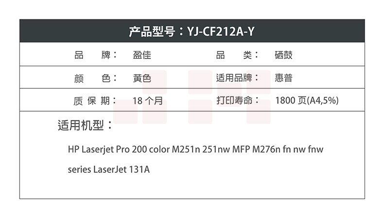 盈佳YJ CF212A(131A)黄鼓(带芯片)
