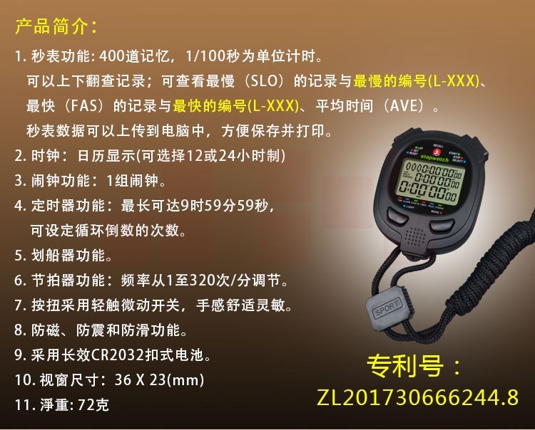 秒表计时器 定时器节拍器 比赛裁判计时用品 数据可上传电脑 400道记忆 PS-1008B