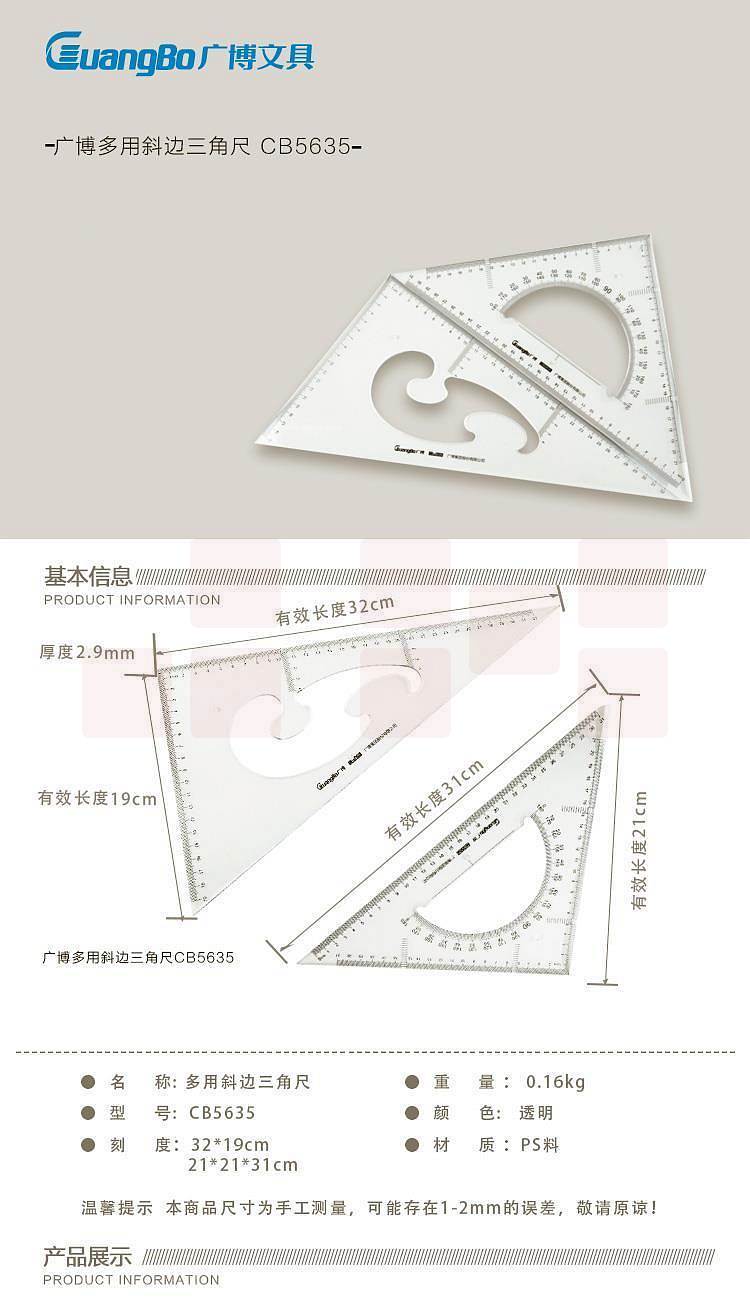广博 CB5635 多用斜边三角尺 21*21*31mm (单位:付) 透明