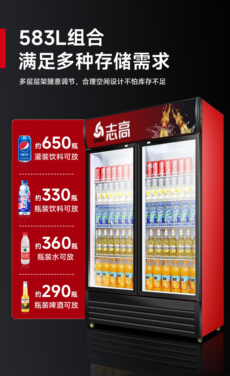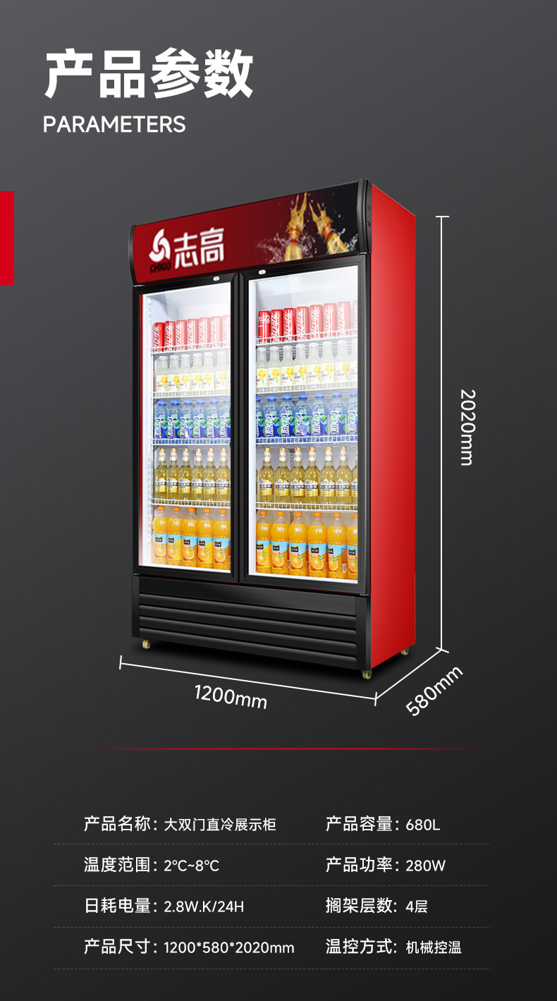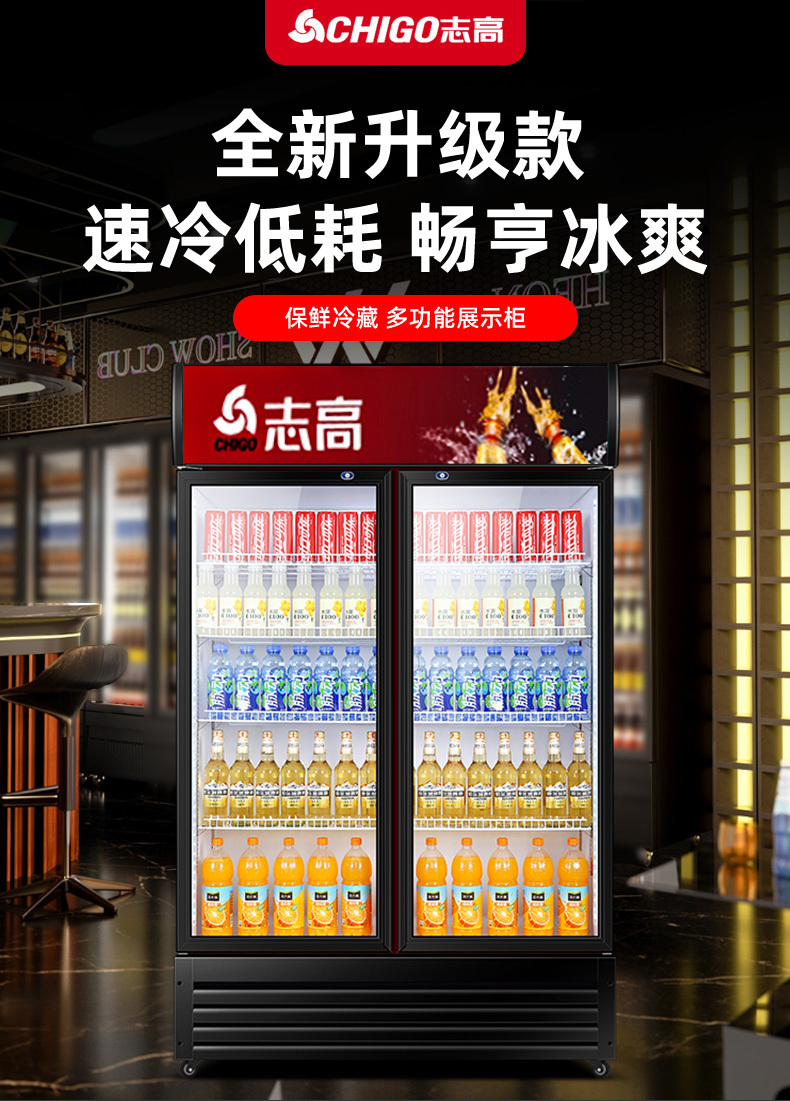 双门冷藏展示柜单门饮料柜冰箱商用超市保鲜冰柜直冷冰柜
