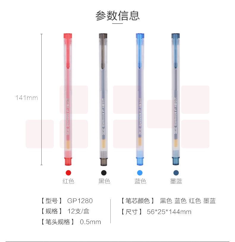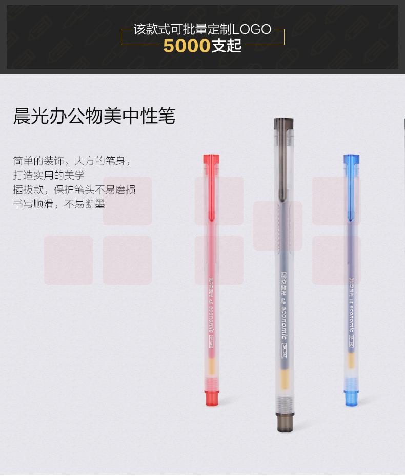 晨光 GP1280 中性笔0.5mm 磨砂半针管签字笔 拔盖水笔 12支/盒(备注颜色)