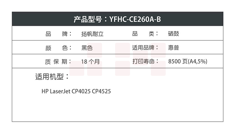 扬帆耐立YFHC CE260A(647A)黑鼓(带芯片) CP4025 CP4525