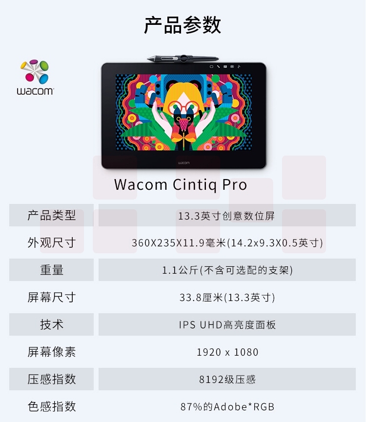 和冠( Wacom )新帝 Pro 13’ DTH-1320/AK0-F 创意数位屏 绘画 手写屏