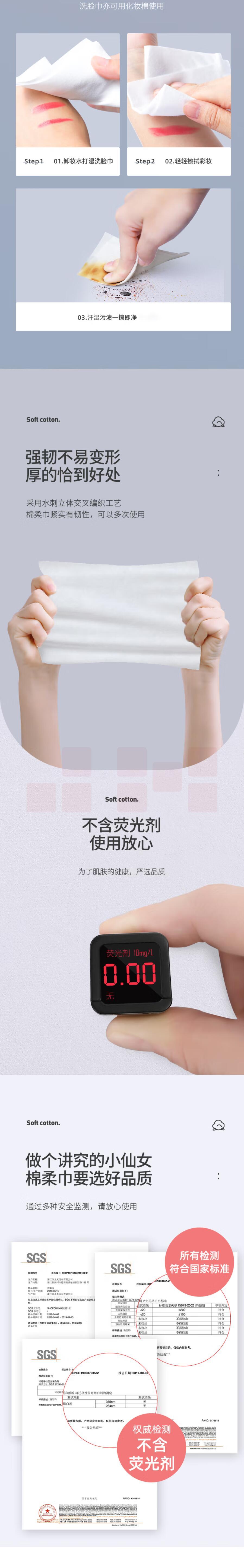 洁丽雅 一次性洗脸毛巾 棉柔巾 洁面巾 擦脸巾 20cm*20cm 100抽