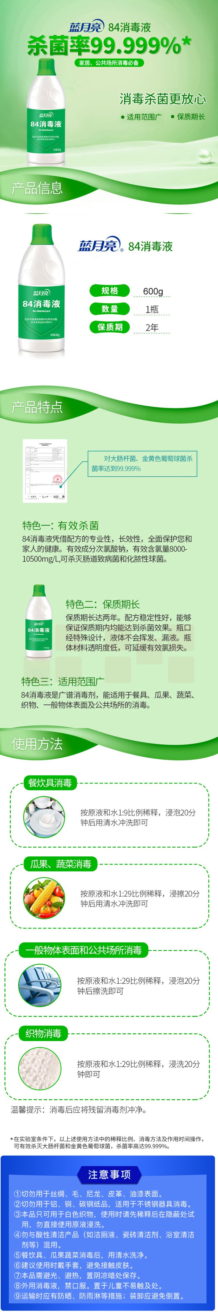 蓝月亮 消毒水 漂白 除菌84消毒液 600g