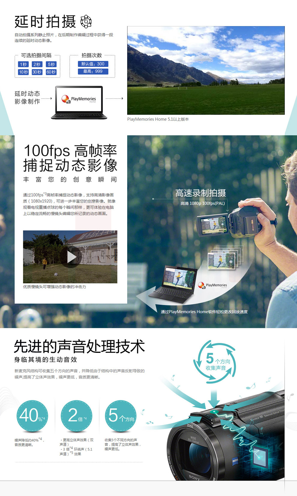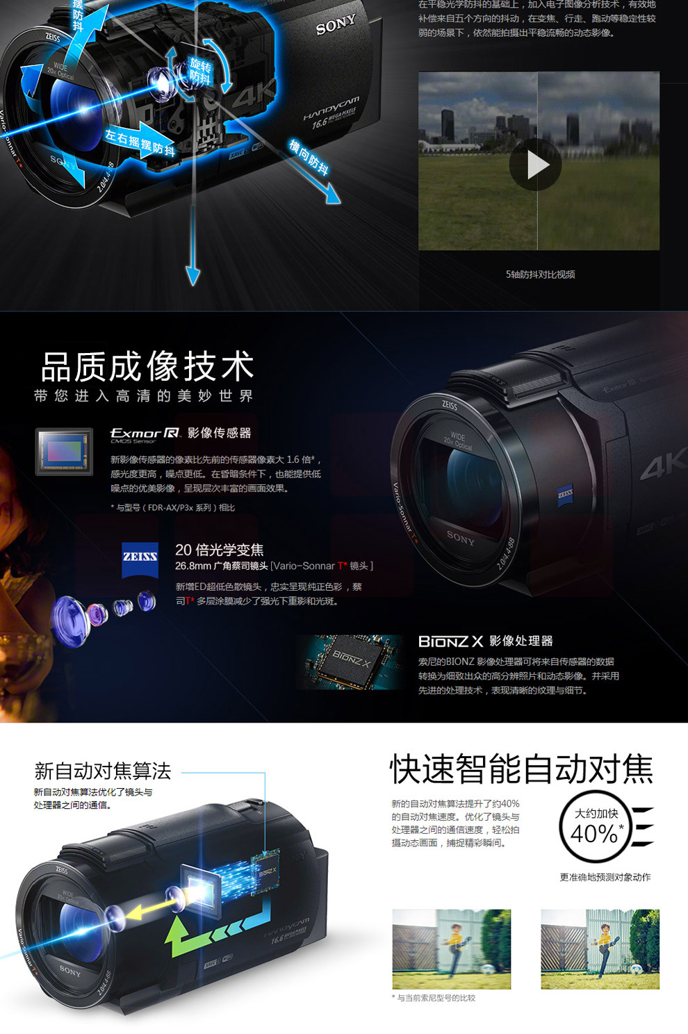 索尼(SONY) FDR-AX40 4K 高清数码摄像机 家用DV机 (内置64G内存) 单机身官方标配