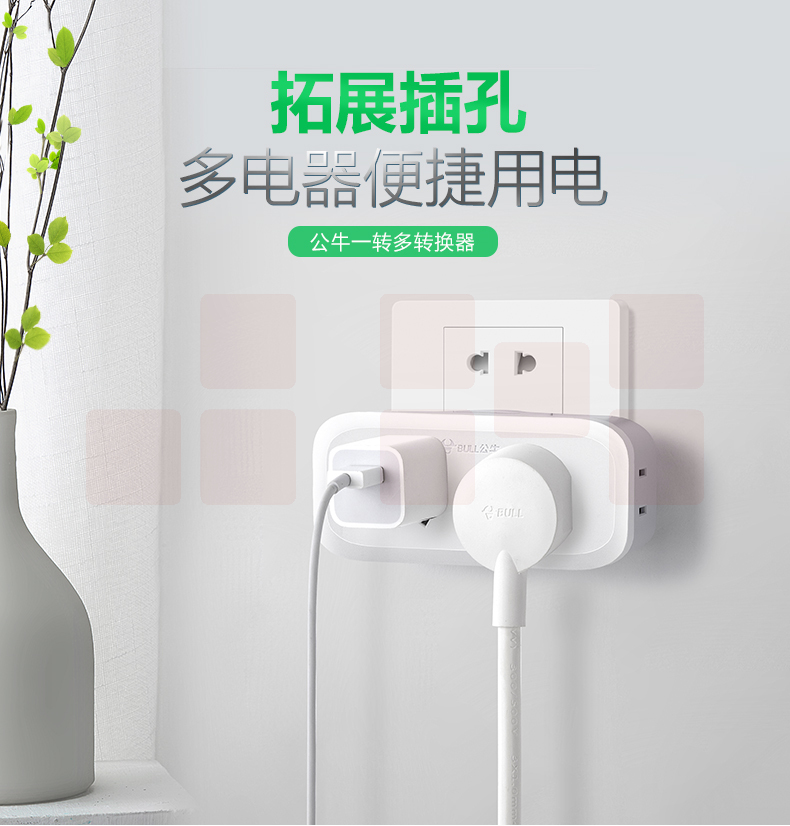 公牛(BULL)GN-904 /转换插头转换插座/国标电源转换器/一转四/