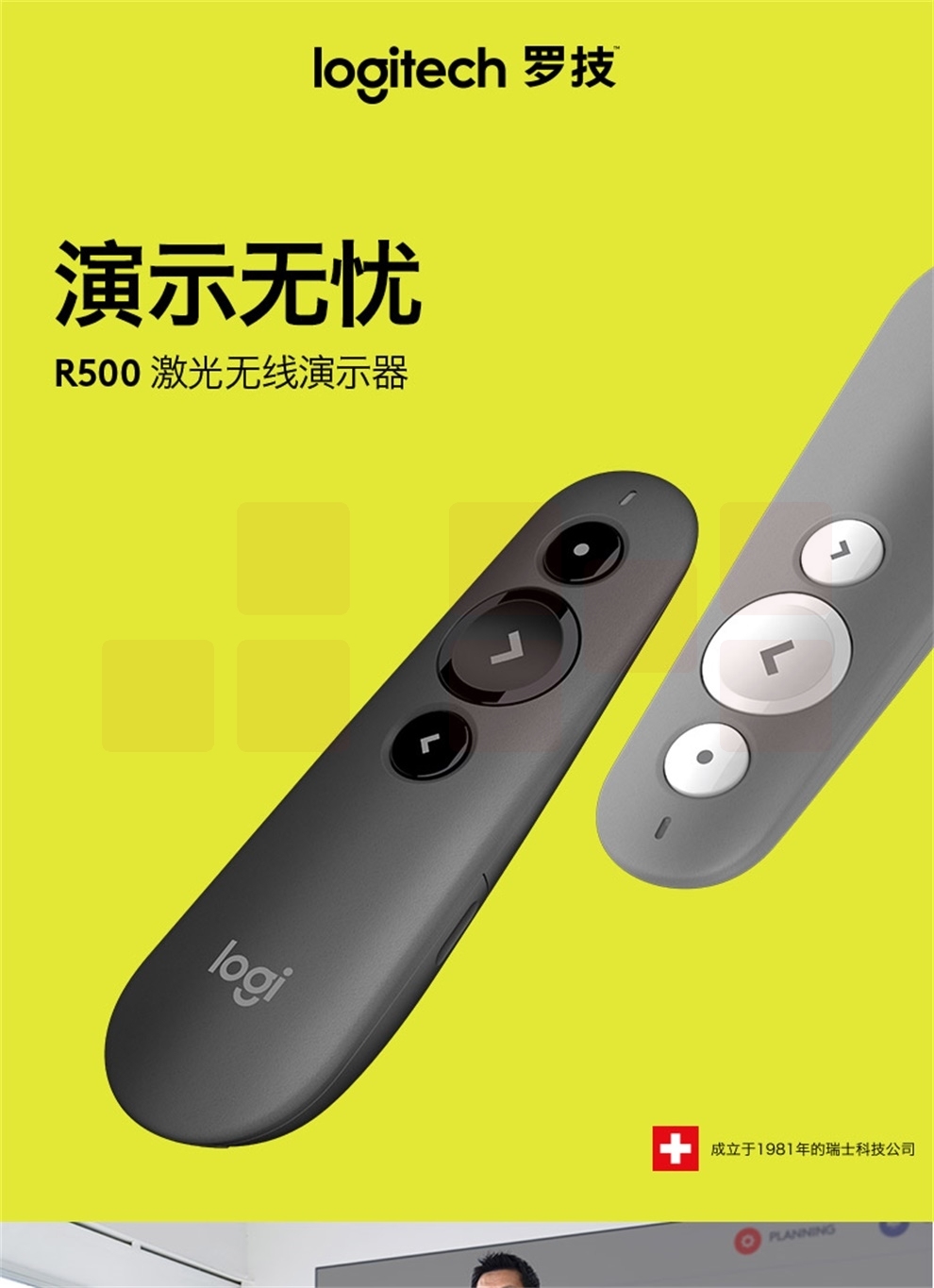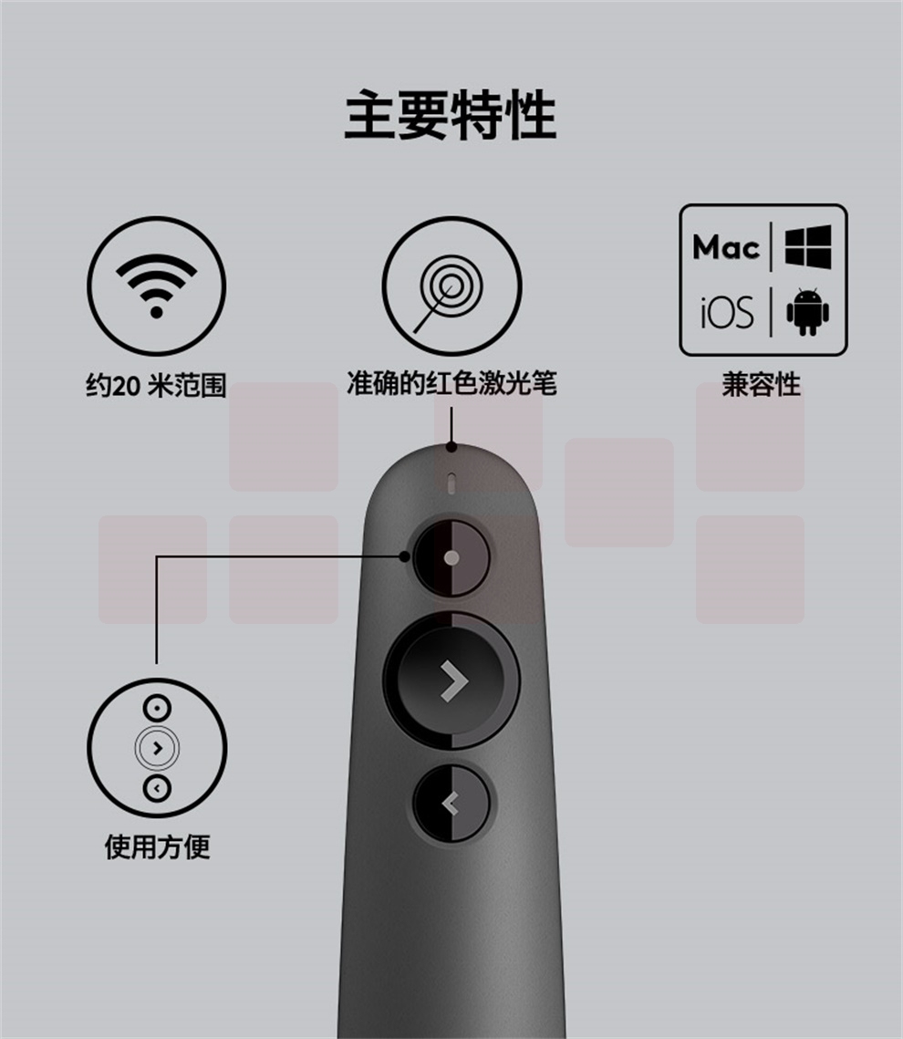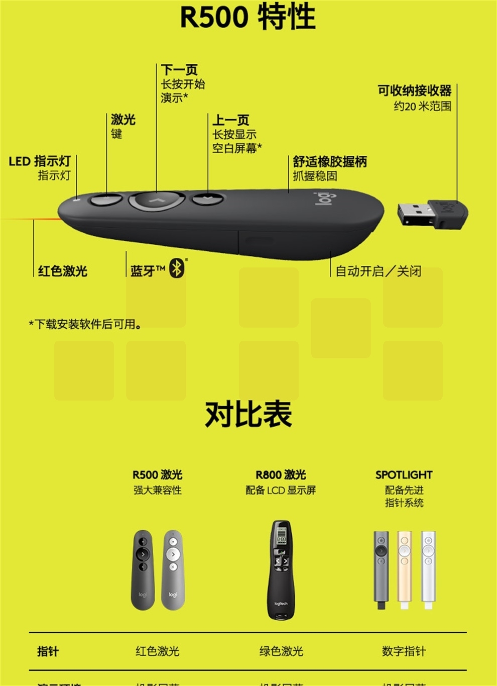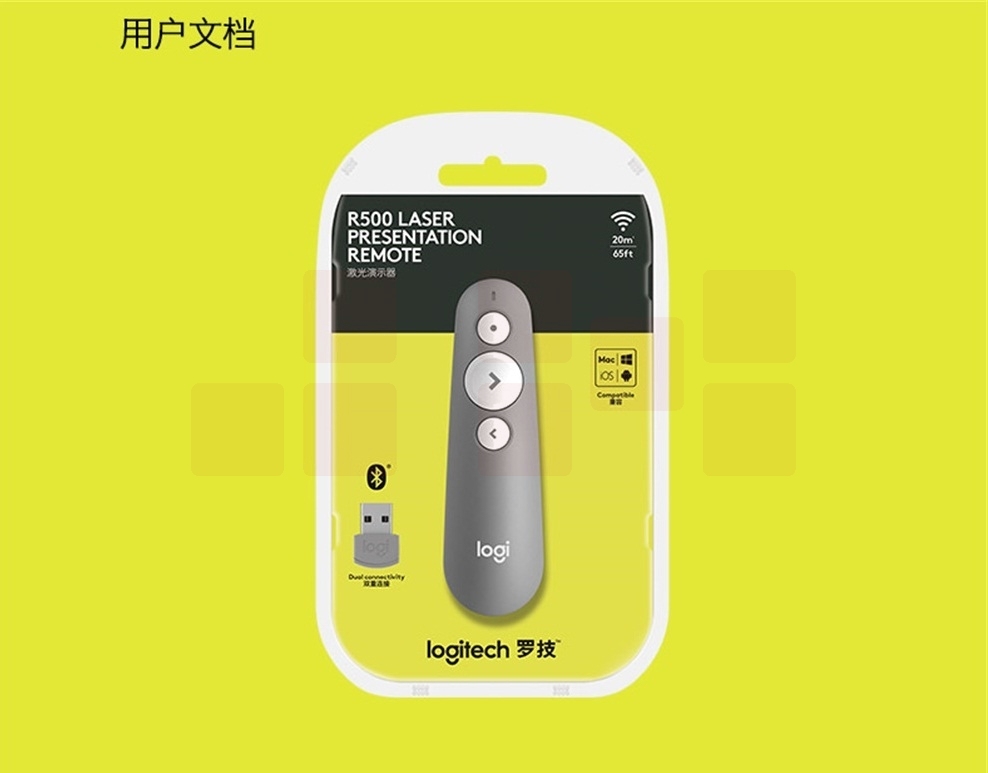 罗技 R500 无线演示器 激光笔 ppt翻页笔 无线蓝牙双连 Mac iOS兼容
