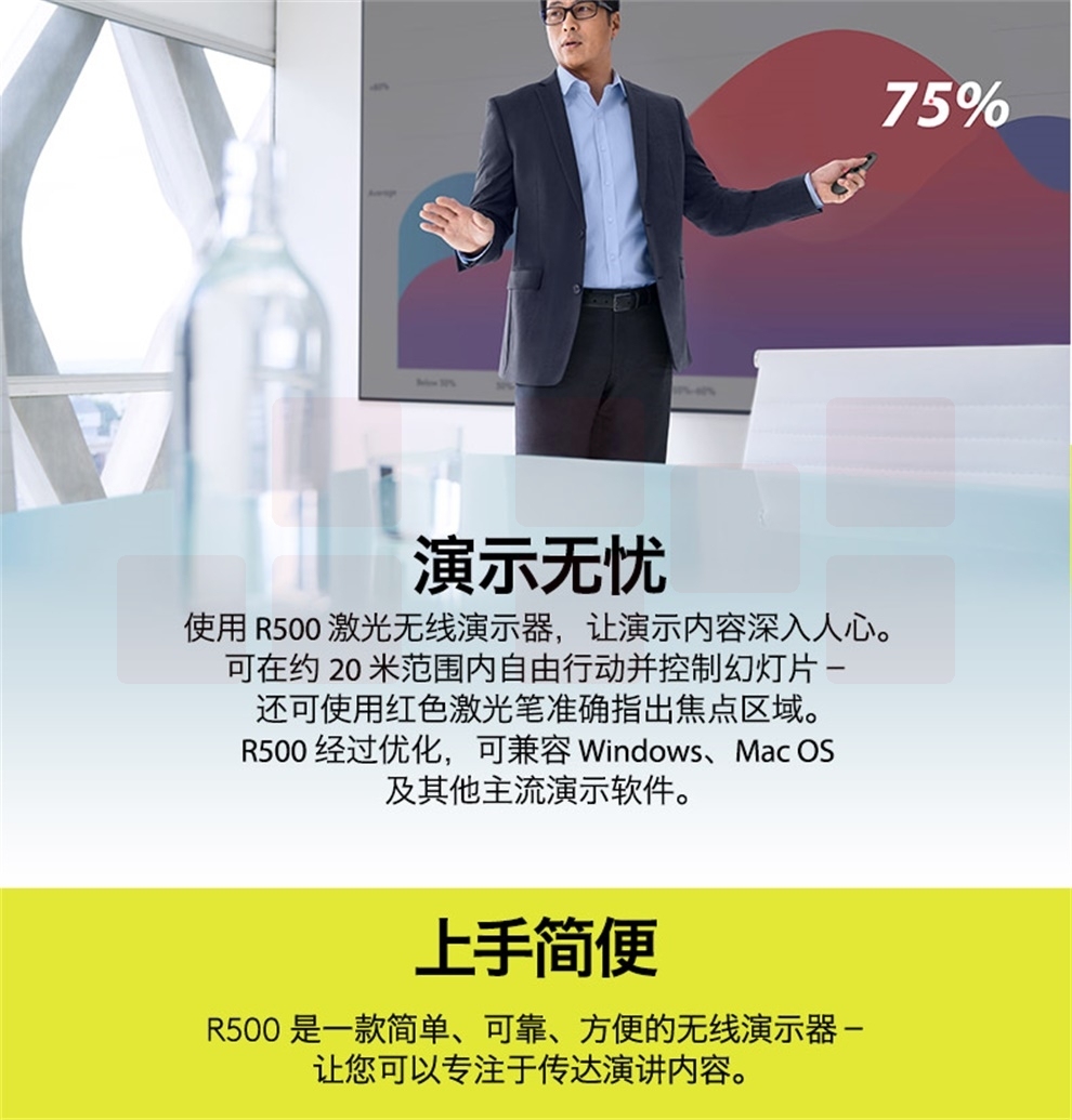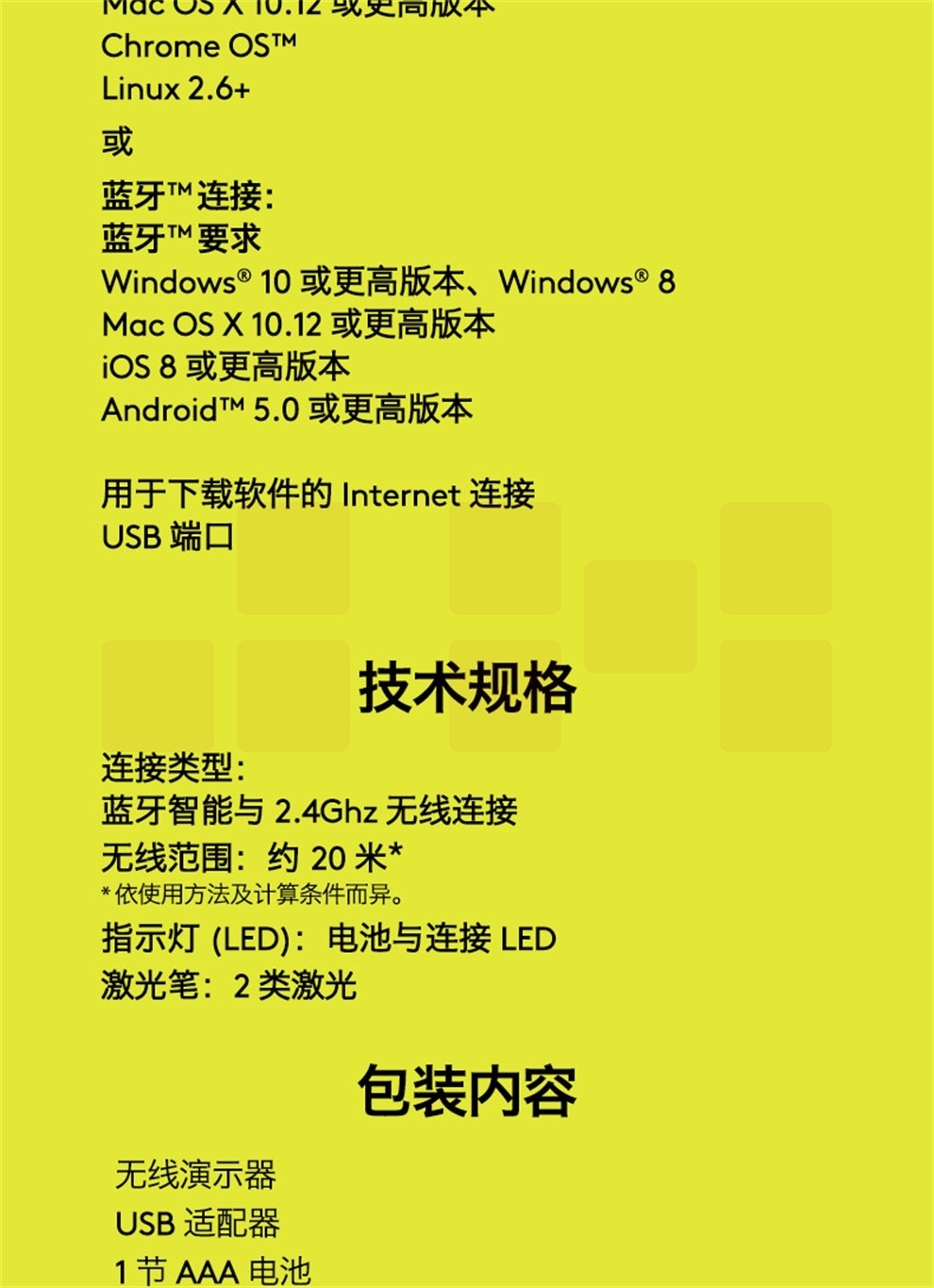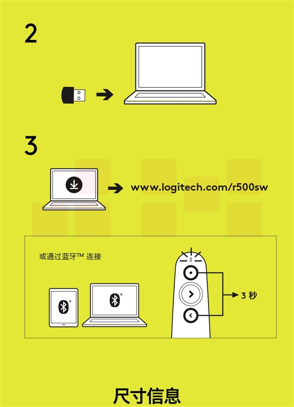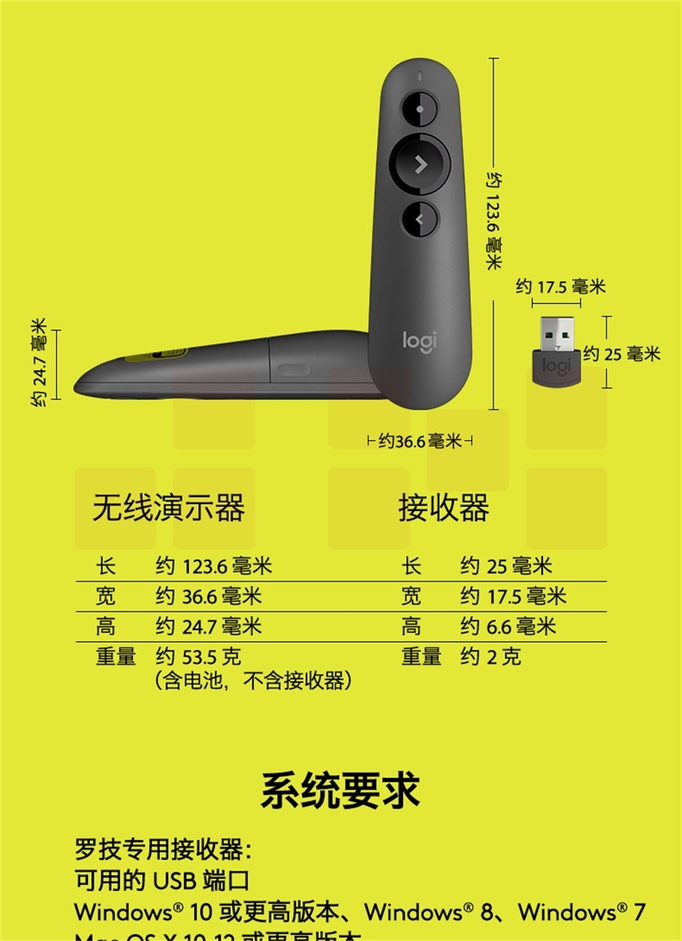 罗技 R500 无线演示器 激光笔 ppt翻页笔 无线蓝牙双连 Mac iOS兼容
