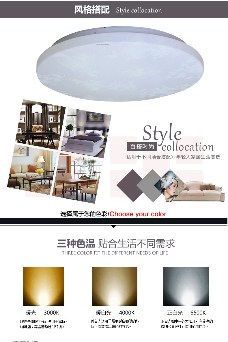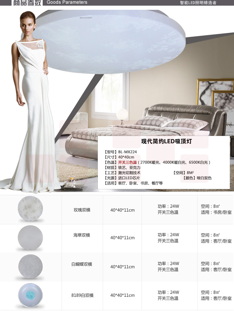 led吸顶灯 2*24W玫瑰变光 直径350mm(拍10个装一箱)