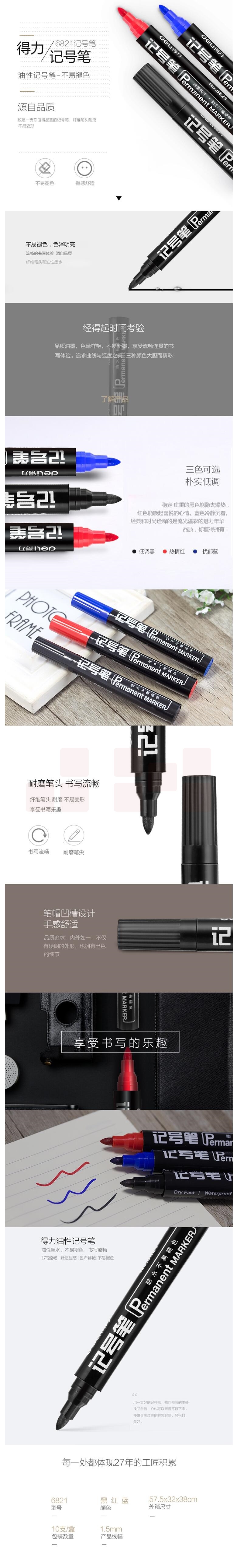 得力 6821 记号笔 1.5mm 10支/盒 (单位:支) 蓝色