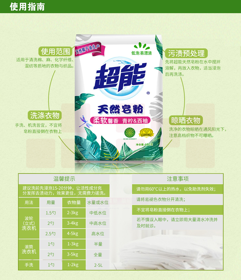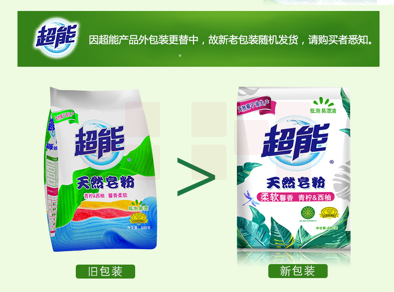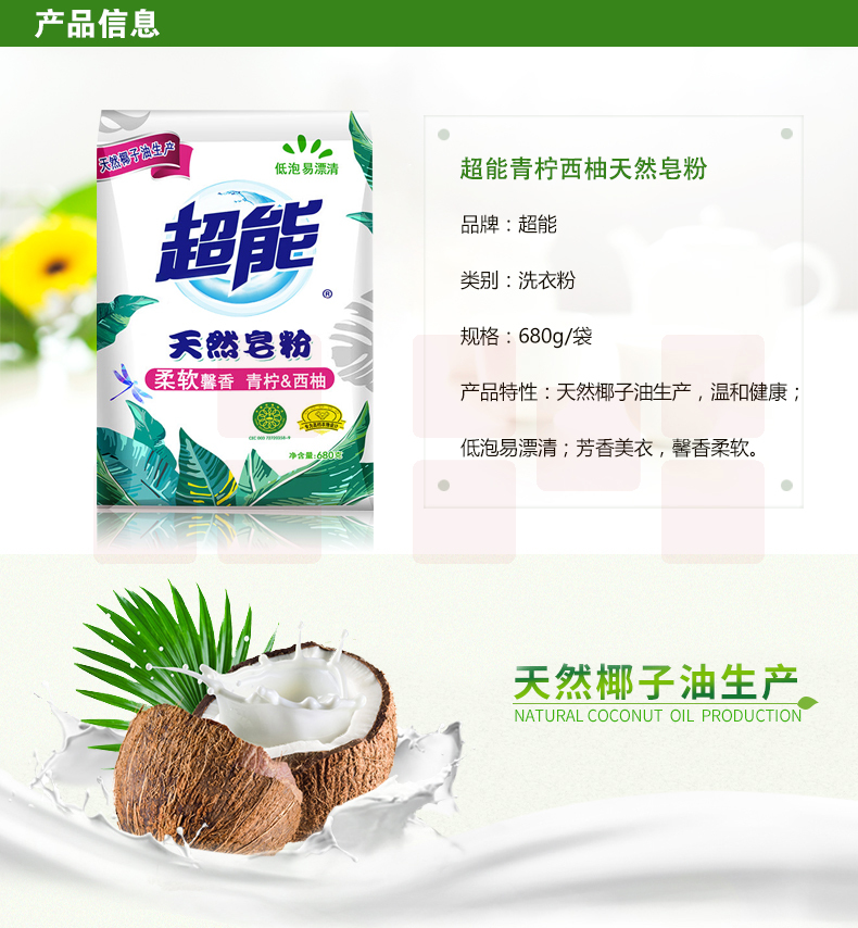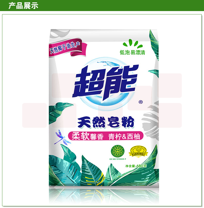 超能(CHAONENG)天然皂粉680g 12袋/件
