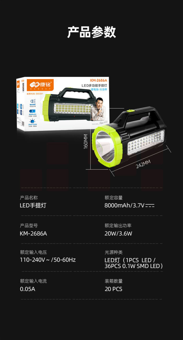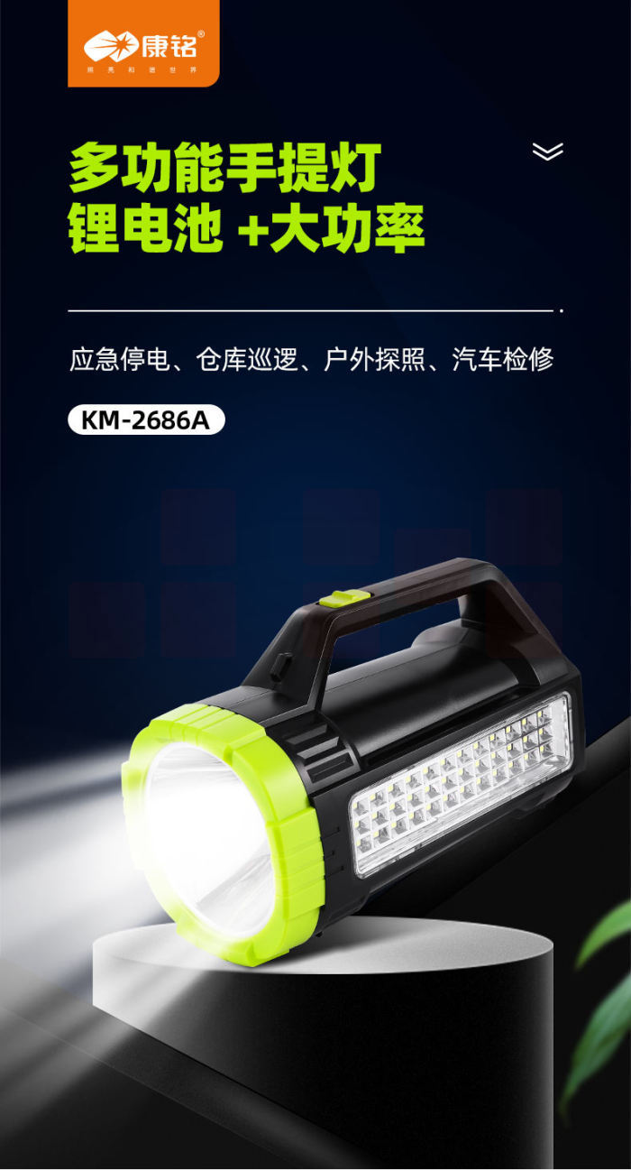 康铭手电筒侧灯两用lLED电筒应急照明手提灯KM-2686A