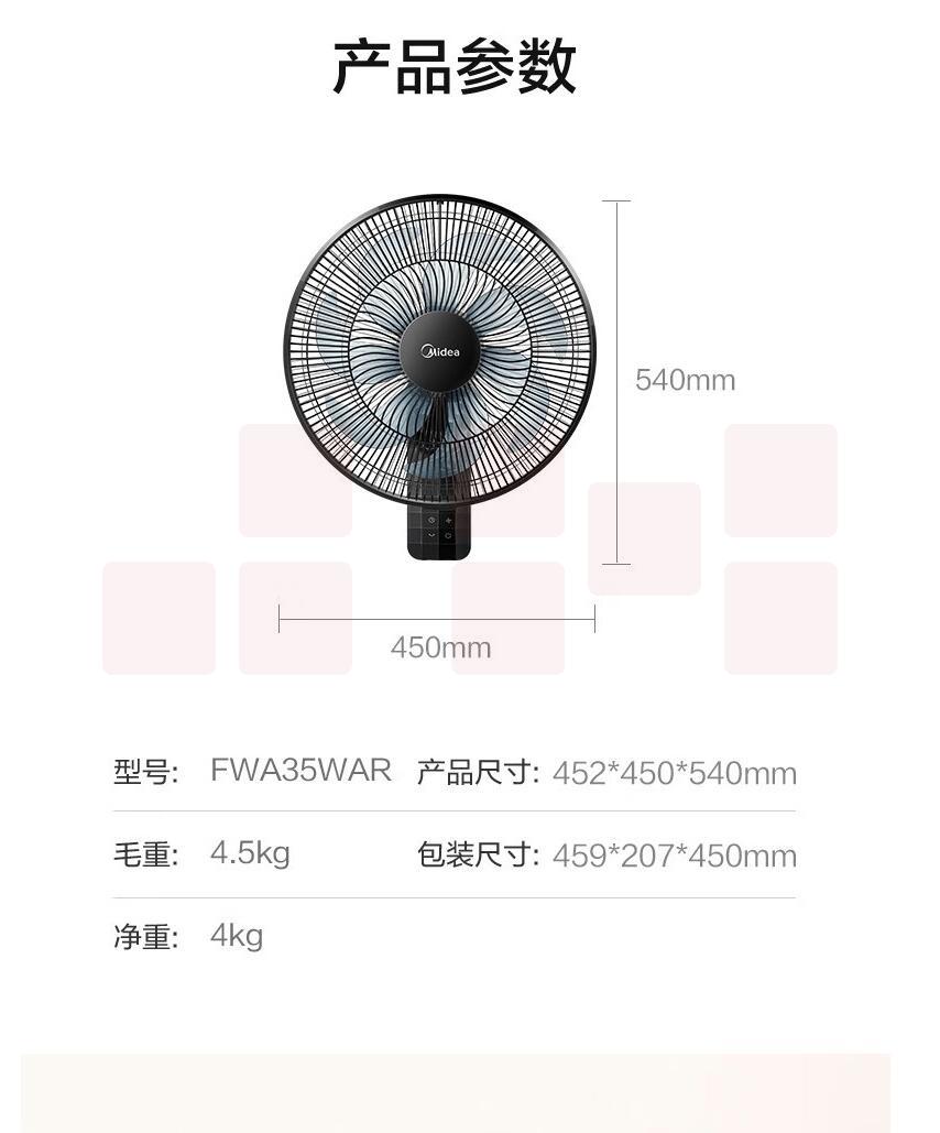 美的(Midea) 电风扇 壁扇 壁挂式风扇 FWA35WAR【7叶遥控款】 家用壁挂式