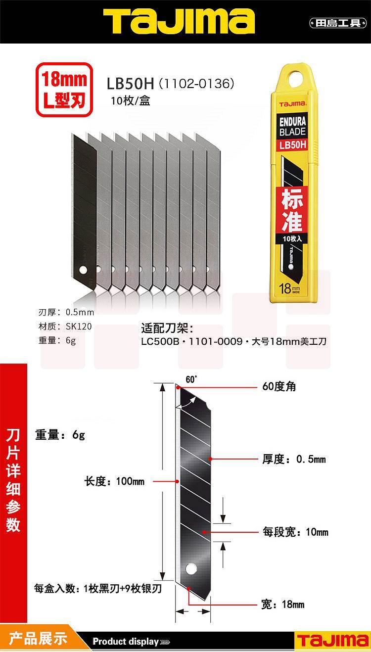 田岛 LB50H 美工刀片芯精装(10片/盒)(单位:盒)