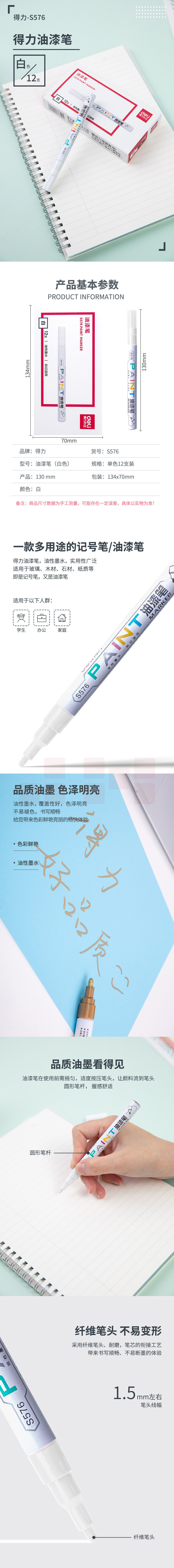 得力 S576 油漆笔细杆修补记号笔 涂鸦笔 金色 12支/盒