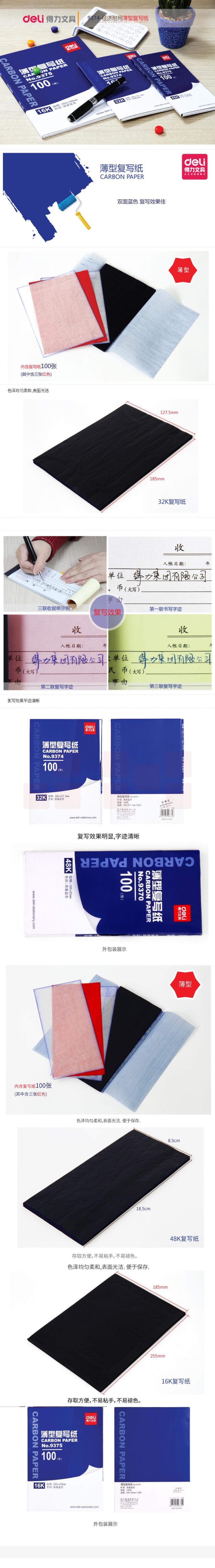 得力48K 复写纸 (蓝)(18.5*8.5cm) 9370 (100张/盒)
