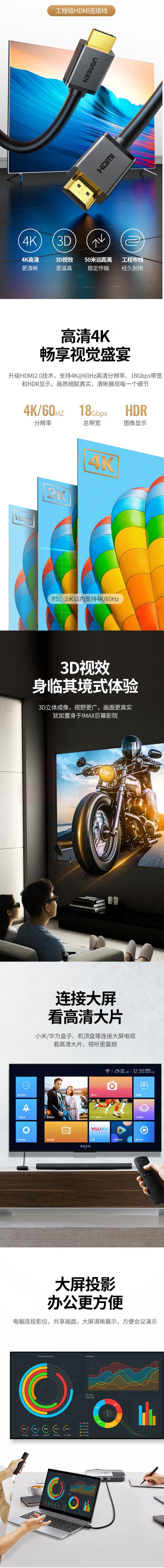 绿联 10178 HDMI线工程级8米显示器数据连接线 4K数字高清线3D视频线