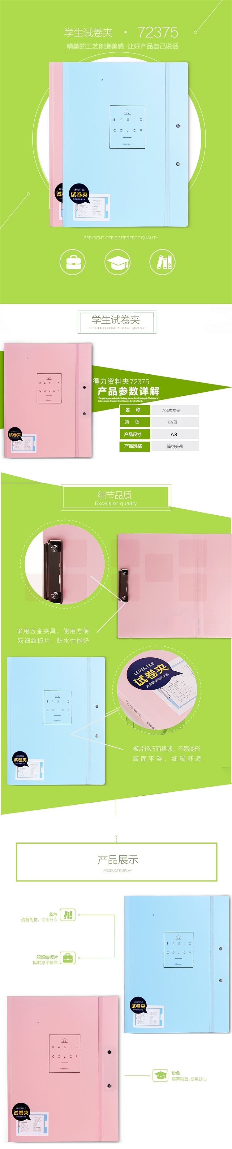 得力 试卷夹展开A3文件PP平板夹金属夹具 72375