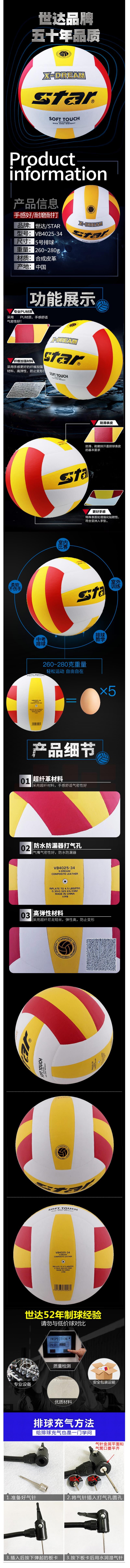 世达(star)VB4025-34 软式 比赛训练 标准5号 耐磨PU 排球 货号:JC