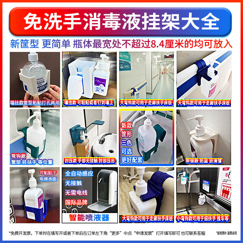 免洗手消毒液挂架手消液固定支架肘压带锁墙架病床扶手推车挂篮筐