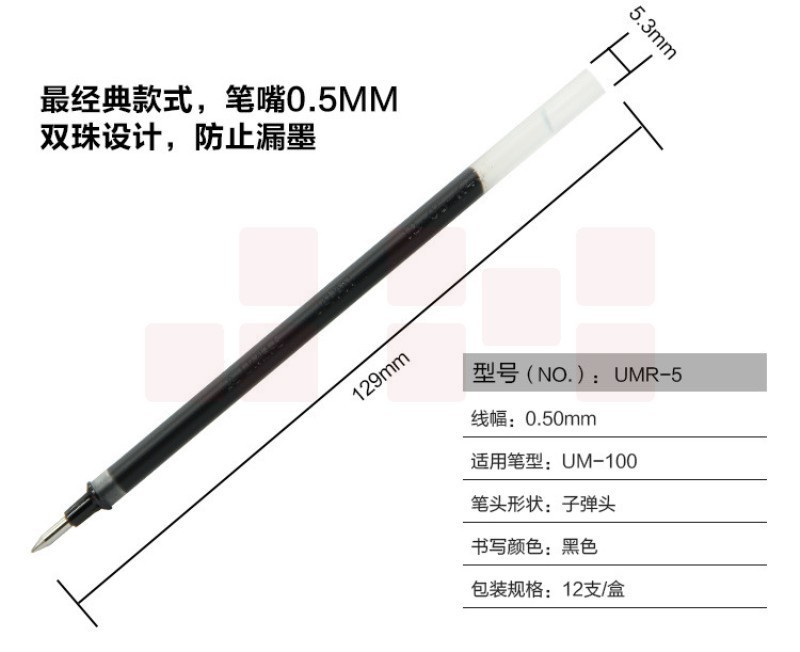 UMR-5 0.5mm中性笔芯适用于UM-100中性笔
