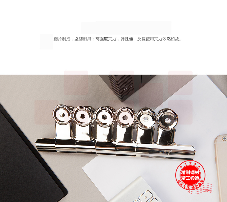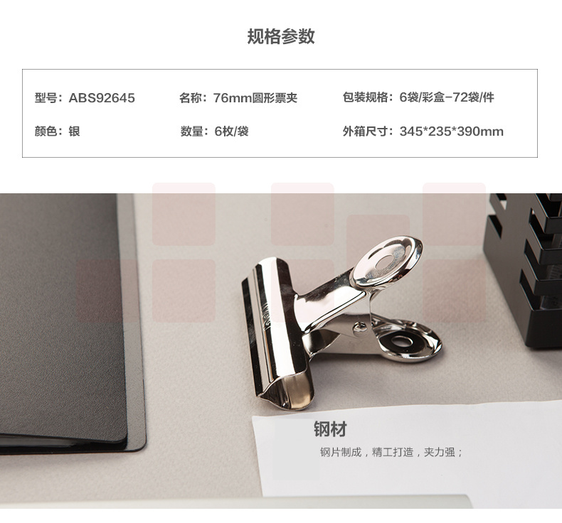 晨光(M&G)76mm圆形票夹 办公书夹家居用文具夹 装订用钢夹ABS92645 一包6个装