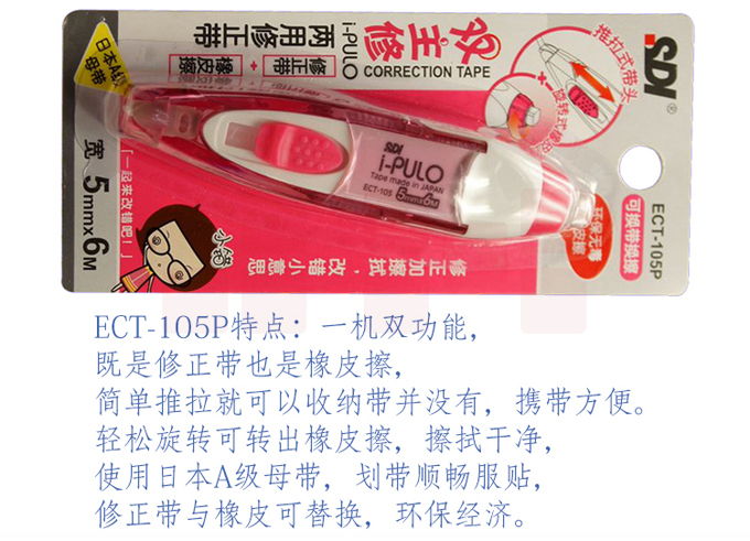 台湾SDI/手牌 ECT-105P 两用修正带5mm*6 粉 按只销售