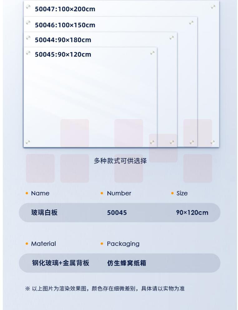 得力(deli)120*90cm超白玻璃白板磁性钢化悬挂式玻璃白板办公会议写字板50045