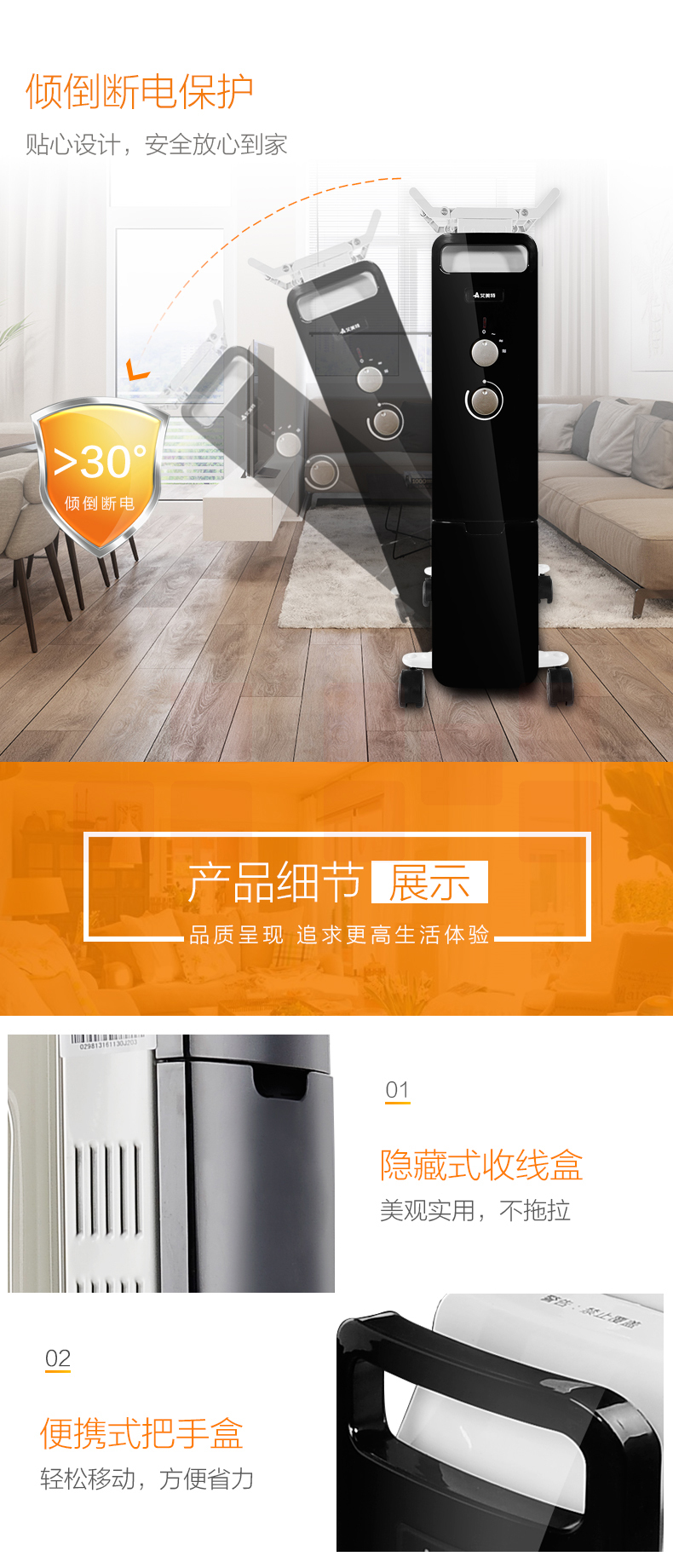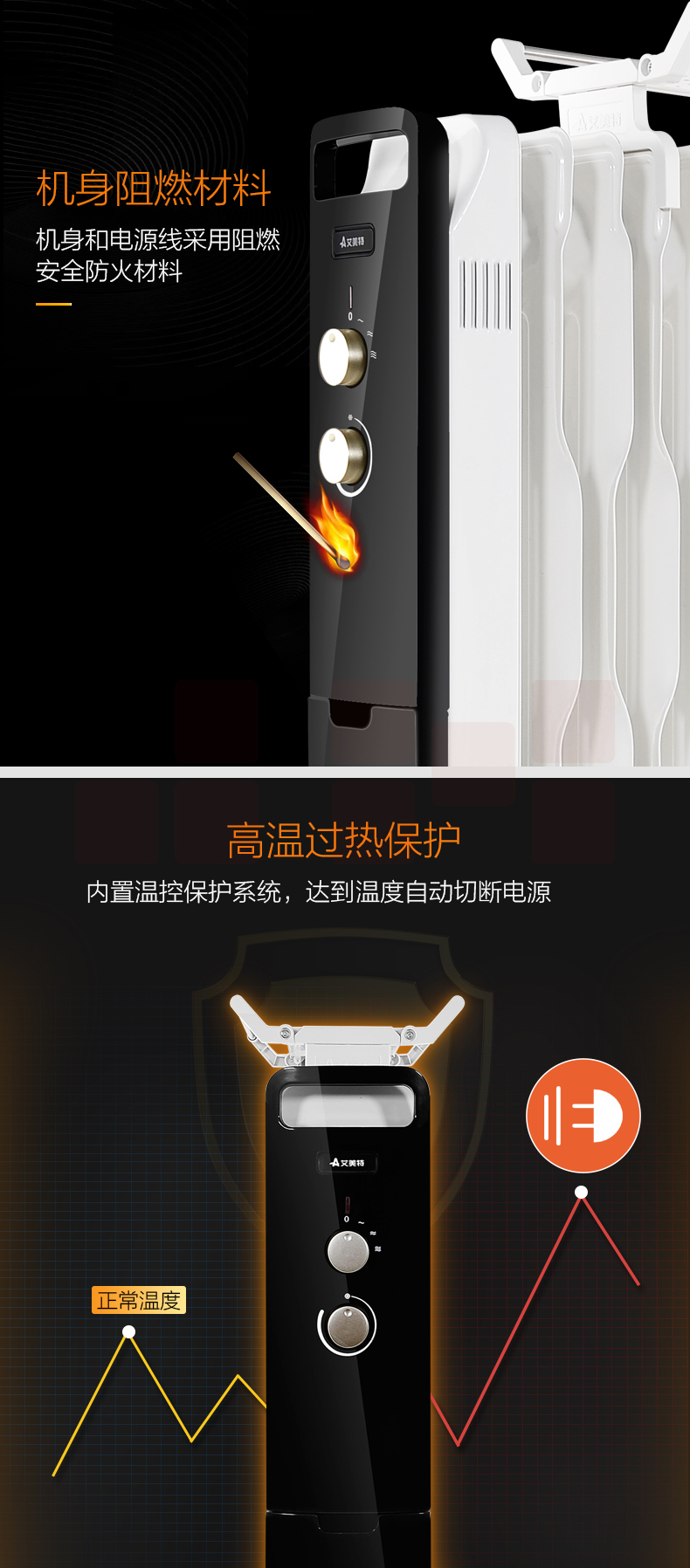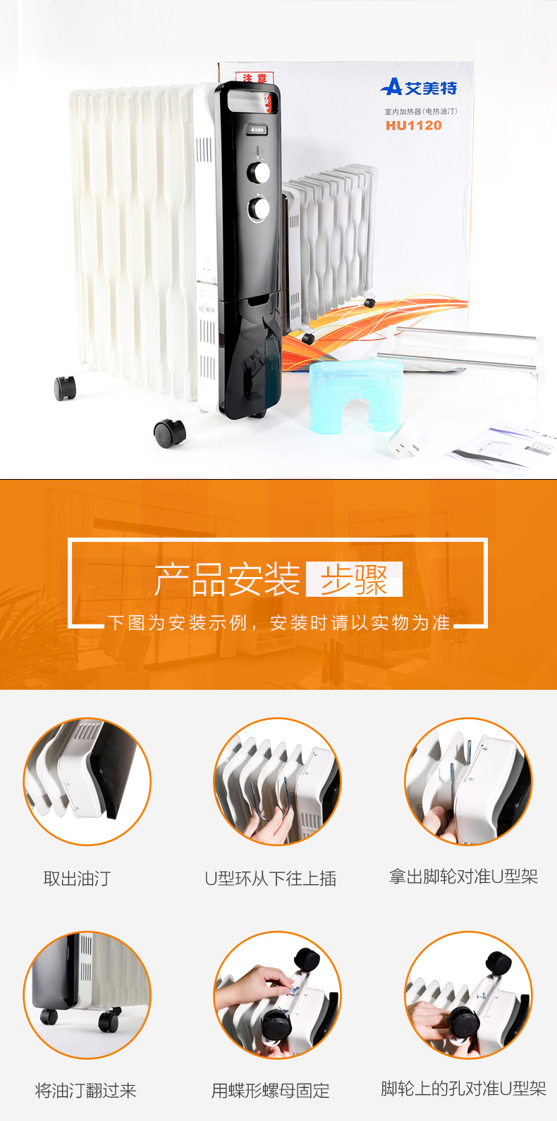 艾美特(AIRMATE)11片 HU1120油汀取暖器 三档调温办公室节能省电