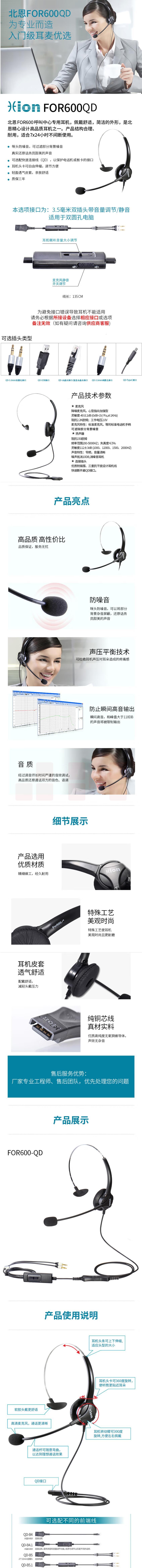 北恩FOR600 头戴式话务员耳机单耳麦呼耳机-双插头+调音量+闭音